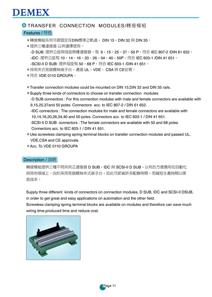产品介绍 Products当前位置:首页产品介绍 DEMEX轉接模組